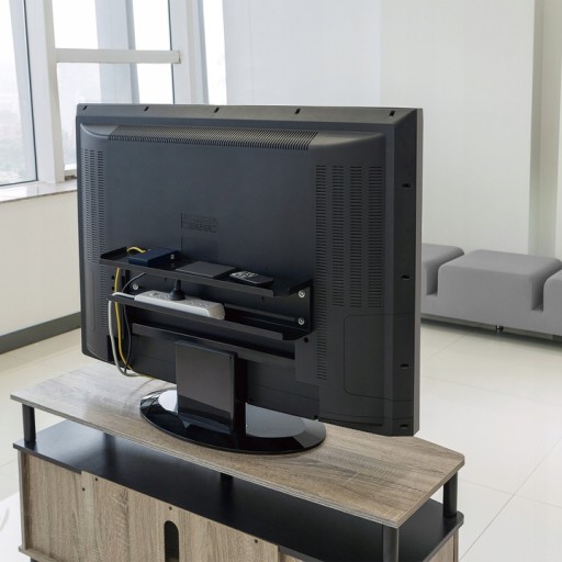 Praktyczna półka idealnie nadaje się do przechowywania pilotów, routerów, listw zasilających, tv boxów, itp. Można ją zamontować na ścianie lub w otworach montażowych z tyłu telewizora. Półka pasuje do telewizorów ze standardem VESA od 75 do 500 mm.
