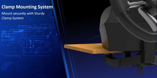 Kierownicę Racing Wheel APEX mocuje się bezpiecznie do stołu lub stojaka za pomocą solidnych zacisków.