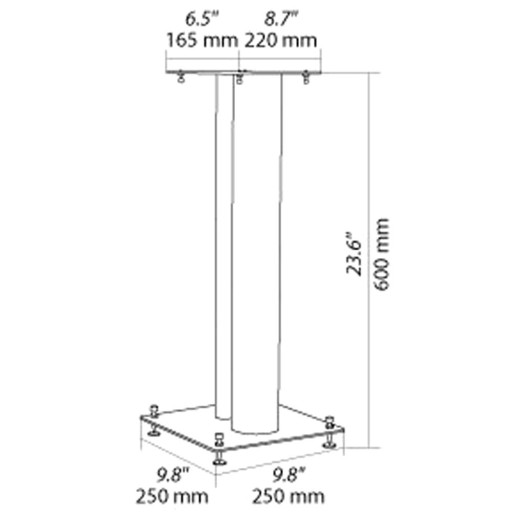 - Wymiary: 165 x 220 mm (wymiary półki) / 250 x 250 mm (wymiary dolnej podstawy) / wysokość 600 mm