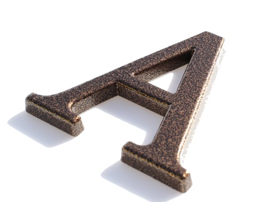 PRZEDMIOTEM AUKCJI JEST LITERA ALUMINIOWA "A" W KOLORZE BRĄZ ANTYCZNY, WYSOKOŚĆ 10,5 CM, GRUBOŚĆ 1 CM, MALOWANA PROSZKOWO