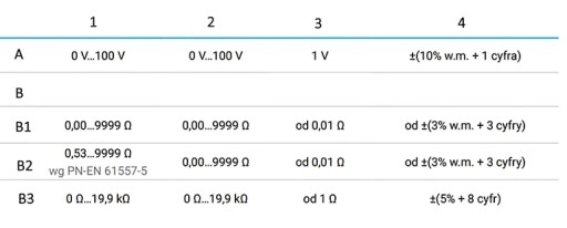 - Prąd pomiarowy w pomiarach rezystancji uziemienia [mA]