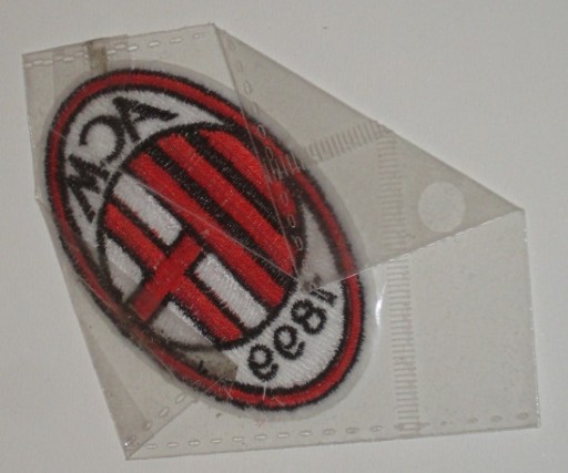 Naszywka AC Milan. Wymiary: 7 x 4,5 cm. Z klejem (do prasowania). Nowa. Stan jak na zdjęciach. Z Włoch. Cena za 1 szt.