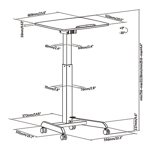 - Regulacja nachylenia blatu od 0 do 30 stopni