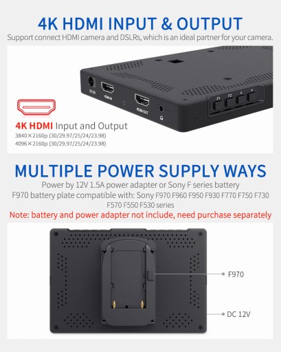 7-calowy monitor 4K Full HD do montażu na kamerze.