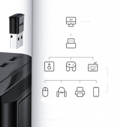 Kompaktowy i funkcjonalny gadżet od marki Baseus pozwala na bezprzewodowe podłączenie do Twojego laptopa komputera m.in. takich urządzeń jak mysz, słuchawki, gamepady czy głośniki. BA04 daje możliwość podłączenia aż 7 urządzeń jednocześnie!