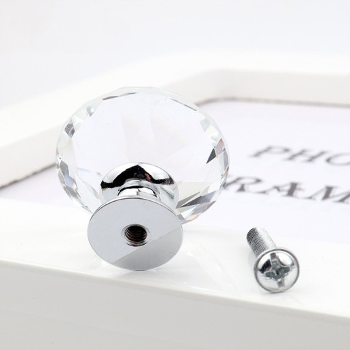 Uchwyty meblowe KRYSZTAŁ będą idealnycm wykończeniem kaźdych mebli. Nadadzą wnętrzu szyku i blasku w stylu Glamour. Wykonane są z najwyższej jakości szkła kryształowego K9. Wyróżniają się doskonałą zdolnością odbijania światła.
