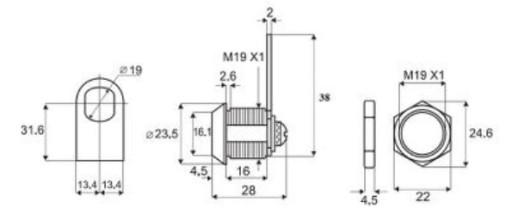 1 szt. składa się z zamka + 2 kluczy + 1 blaszki + 1 śrubki + 1 zaczepu + 1 osłony zamka + podkładki elastycznej + nakrętki montażowej;