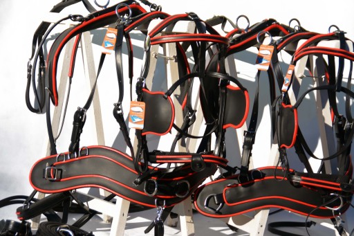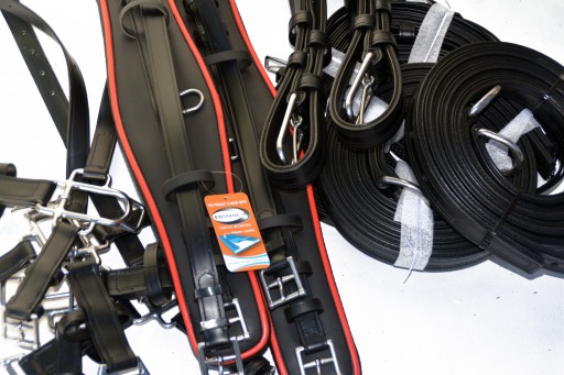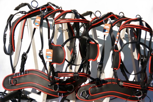 Uprząż na parę koni roz. COB . Uprząż wykonana z syntetycznego zbrojonego materiału biothane wyprodukowanego w USA. Biothane jest bardzo lekki i wytrzymały ,jest odporny na pot i zabrudzenia . konserwacja jest bardzo prosta ,można użyć myjki ciśnieniowej , lub mycie pod zwykłym kranem.Biothane jst dużo wytrzymalszy od uprzęży ze skóry. Piersi anatomicznie profilowane uprząż nie posiada lejcy ,okucia wykonane ze szlachetnej stali kwasowej ,w ofercie bardzo dużo modeli uprzęży ,oraz akcesoriów do zaprzęgu.Niska cena POLECAM