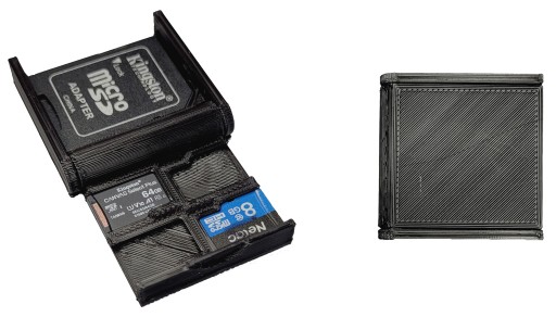 Organizer na karty micro SD oraz adapter micro SD ułatwia odnalezienie kart na przykład w plecaku lub torebce oraz zabezpiecza same karty oraz adapter przed uszkodzeniem. Posiada zatrzaski zabezpieczające przed samo otwarciem się etui. Sloty posiadają wejście na cztery karty oraz jeden adapter.