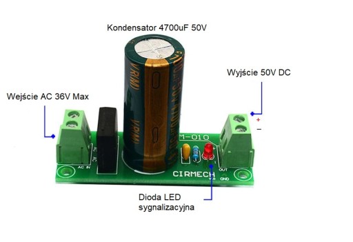 - Napięcie wejścia AC Max 36V ( kondensator 50V )