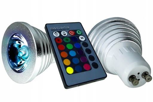 DWA KOMPLETY - ŻARÓWKA GU10 3W RGB Z BEZPRZEWODOWYM PILOTEM!