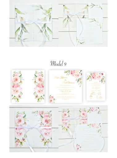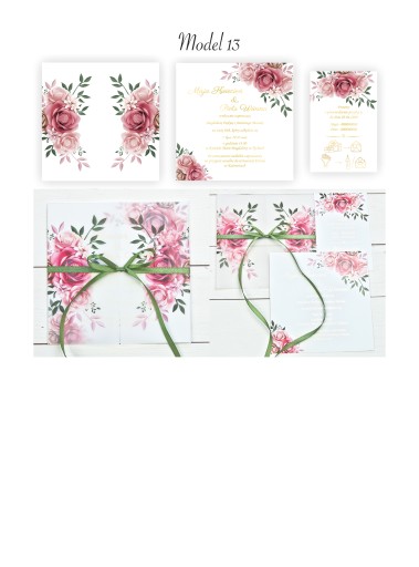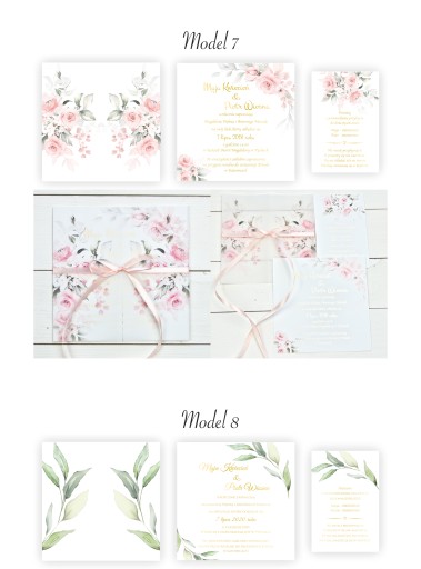 - Pewność że do zaproszeń dokupią Państwo inne elementy papeterii ślubnej (winietki, zawieszki, menu, nr stołów, magnesy, księgi gości, pudełka na koperty itp.) w motywie graficznym spójnym z zaproszeniem