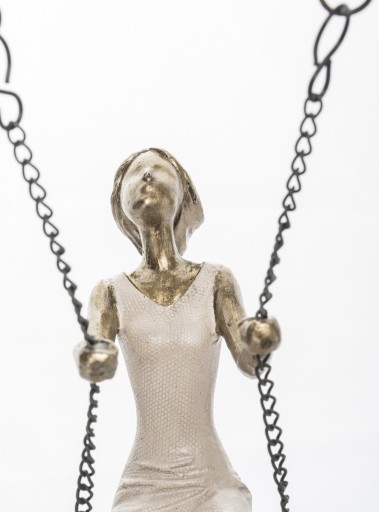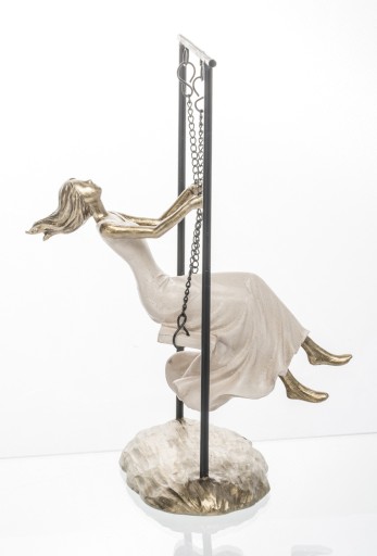 Urocza figurka kobiety huśtającej się na huśtawce, doskonała ozdoba salonu, sypialni lub garderoby. Uwagę zwracają misternie wykonane detale figurki. Prezentowana figurka przyjemnie ozdobi pomieszczenie.