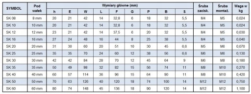 Wspornik końcowy wałka typu SK20 na wałek fi 20 mm