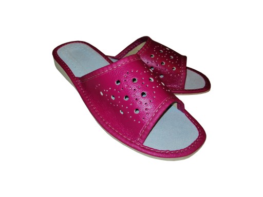 Pantofle posiadają wkładkę ortopedyczną ze skóry naturalnej, która zapewnia prawidłowe ułożenie stopy.