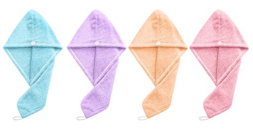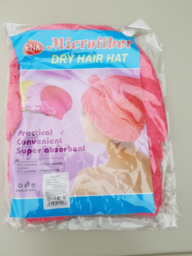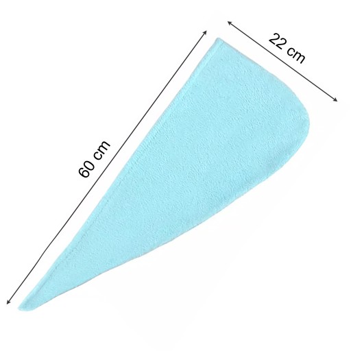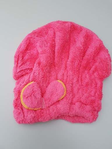 Czapka/ręcznik do suszenia włosów wykonana jest z mikrofibry, dzięki czemu jest zdrowa i bezpieczna dla skóry i włosów.