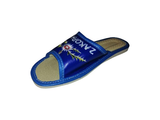 Pantofle wykonane są z wysokiej jakości skóry ekologicznej, łatwej w utrzymaniu w czystości.