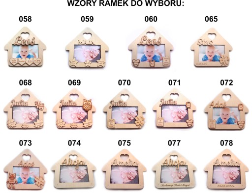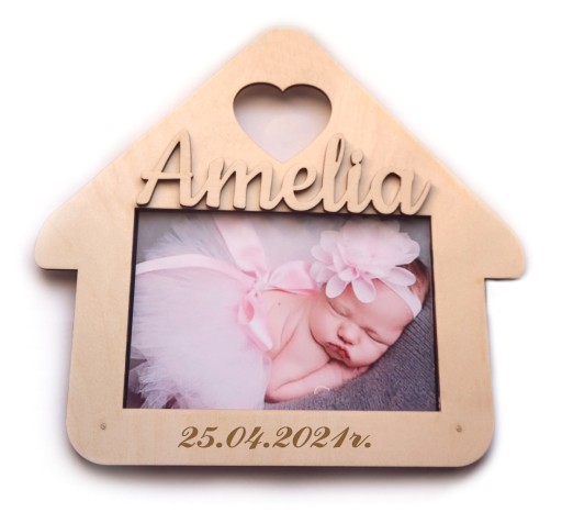 Drewniana Ramka Domek na zdjęcie z imieniem dziecka,