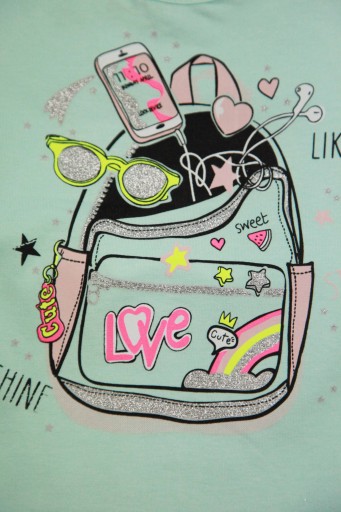 Bluzka została wyprodukowana z wysokogatunkowej bawełny. Piękny nadruk ozdobiony brokatem.