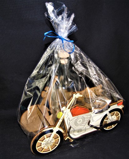 - drewniany stojak Motocykl z karafką i kieliszkami