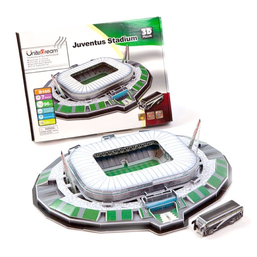 Model stadionu piłkarskiego 3D Juventus Stadium zbudowany jest z 96 piankowych elementów, które zostały pokryte kolorami takimi samymi, jak prawdziwy budynek. Aby ułatwić kompletowanie części, wszystkie z nich zostały podpisane oraz ułożone tematycznie na piankowych tablicach. Dzięki laserowemu wycięciu wystarczy wycisnąć potrzebne nam elementy, aby zacząć składanie tej imponującej konstrukcji z puzzli 3D. Do pracy nie są potrzebne żadne narzędzia, wystarczy to, co znajduje się w pudełku oraz chęć zabawy i minimum talentu konstrukcyjnego.