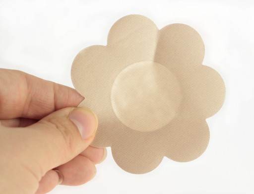 Wykonane z wysokiej jakości satyny, w cielistym kolorze. Druga storna pokryta jest hipoalergicznym klejem, dzięki któremu naklejki doskonale przylegają do skóry.