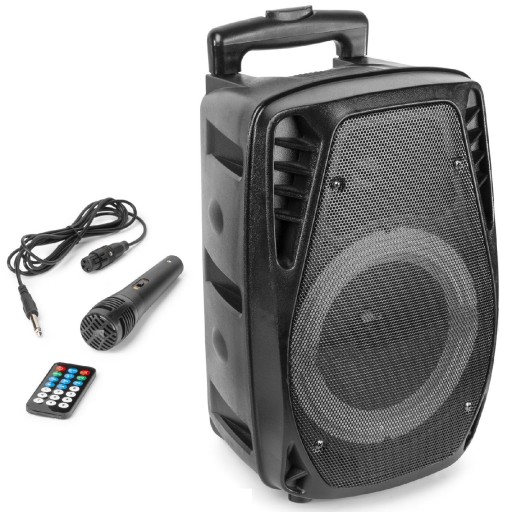 FT8LED-MK2 to kompletny system nagłośnieniowy karaoke o mocy 300W wyposażony w akumulator dzięki czemu można używac jej w miejscach gdznie nie mamy dostepu do sieci elektrycznej. Na pokładzie znajduje się czytnik USB/Mp3, wejście liniowe, moduł Bluetoth oraz wejście mikrofonowe. Całość zamknięta jest w kompaktowej oraz wytrzymałej obudowie z tworzywa z kółkami oraz rączką transportową.