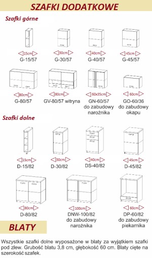 - Szafki dodatkowe z oferty można dowolnie dokupować i ustawiać w różnej kolejności