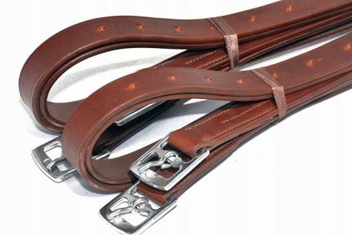 Puśliska skórzane 110cm Wykonane z bardzo dobrej jakości selekcjonowanej skóry bydlęce ,dziurki oznaczone cyframi aby długość regulacji strzemion była łatwa. Sprzączki wykonane z bardzo dobrej nierdzewnej stali szlachetnej . Zapraszam do zakupu