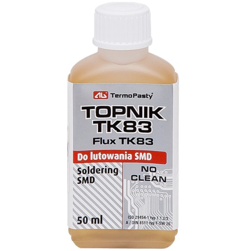 Ciekły, średnio aktywny topnik typu 1.1.2/3 A wg ISO 9454-1, alkoholowy roztwór kalafonii z dodatkiem aktywatorów organicznych. Doskonale nadaje się do ręcznego cynowania w celu przywrócenia im lutowności. Dodatkowo produkt nie wymaga zmywania.