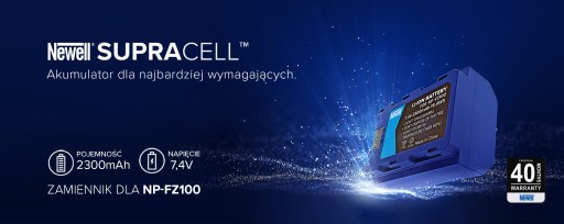 Akumulator Newell SupraCell zamiennik NP-FZ100 stworzono z myślą o najbardziej wymagających użytkownikach. Wieloletnie doświadczenie cenionej na całym świecie marki pozwoliło stworzyć ogniwo, które oferuje jeszcze większą trwałość i wydajność. Akumulator jest odporny na dużą liczbę cykli ładowania, co oznacza, że przez bardzo długi czas możesz cieszyć się pojemnością wynoszącą w tym przypadku 2300 mAh. Nie musisz martwić się o to, że po kilku miesiącach intensywnej pracy, żywotność ogniwa znacząco się skróci. Seria SupraCell to zupełnie nowa jakość zamienników!