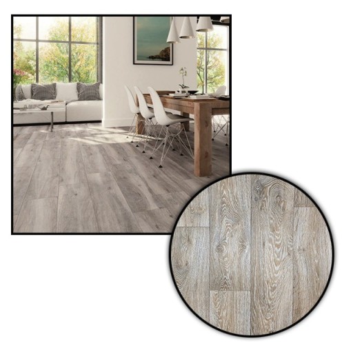 Elastyczna wykładzina o wzorze który imituje drewniane panele z mocno zaznaczonymi słojami w kolorze beżu, szarego i brązu. Wykładzina została wykonana z polyvinylchloridu znanego również pod krótszą nazwą PCV. Jest to wykładzina przeznaczona do użytku domowego. Grubości oferowanej wykładziny to 2,0 mm i warstwa użytkowa 0,15 mm, przeznaczona do pomieszczeń mieszkalnych o średnim natężeniu ruchu. Odporna na wgniecenia i załamania, oraz promienie UV.