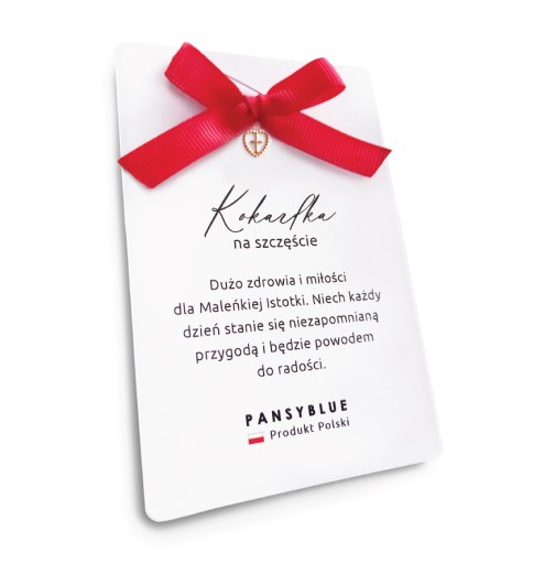Czerwona kokardka symbolicznie przypinana na szczęście dla najmłodszych. Odzwierciedla miłość, radość oraz odwagę.