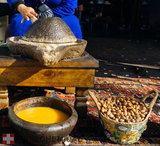 W celu pozyskania oleju arganowego nierafinowanego tłoczonego na zimno, jądra są mielone i tłoczone w specjalnych prasach, które nie wykorzystują ciepła ani rozpuszczalników chemicznych. To pozwala na zachowanie pełnego spektrum wartości odżywczych, takich jak witamina E, kwasy tłuszczowe omega-6, antyoksydanty i polifenole.