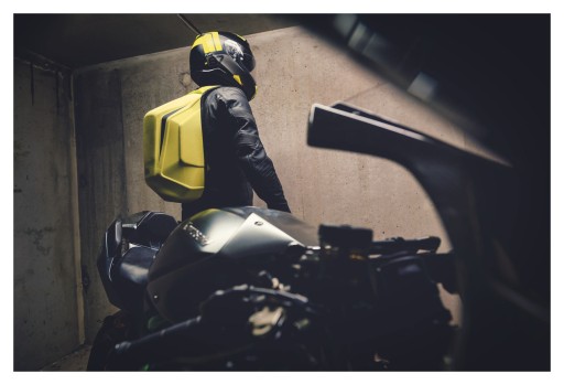 Plecak zaprojektowany z myślą o motocyklistach. Jego forma idealnie przylega do pleców w pozycji pochylonej dzięki czemu nie ma żadnej utraty aerodynamiki podczas jazdy. Twarda struktura nie tylko powoduje iż w środku nic się nie zgniecie, ale też jest doskonałym dodatkiem jako "garb".