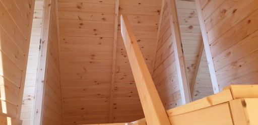- Konstrukcja: wykonana w technologii szkieletowej (kanadyjskiej) zabezpieczona folią wiatroizolacyjną. Drewno o grubości 95/45mm certyfikowane c-24