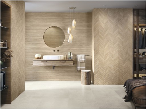 Kolekcja Larchwood to drewnopodobne płytki imitujące panele. Płytki ścienne występują w trzech kolorach: alder, ipe i maple. Kolekcja składa się z płytek bazowych w drobne paseczki i Zig ze wzorami chewronowymi. Płytki dostępne są rozmiarach 30x90 cm. Kolekcja do wykorzystania nie tylko w łazience ale także kuchni czy salonie.