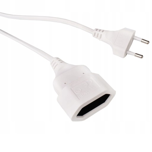 - Przedłużacz domowy do szerokiej gamy zastosowań z pojedynczym, płaskim gniazdem 1x2P oraz płaską wtyczką.