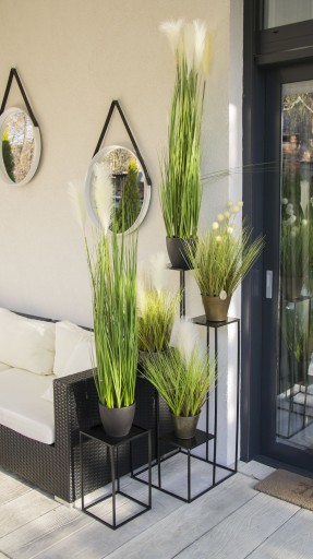 Dzięki solidnemu i wytrzymałemu wykonaniu sprawdzi się również na: balkon, ogród, altanę czy werandę. Stojak wykonany jest z drutu stalowego, malowanego proszkowo, a zatem jest odporny na czynniki zewnętrze oraz zniekształcenia.
