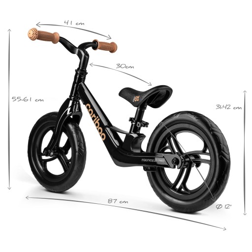 Ultralekki. Waży jedynie 2,50 kg, co sprawia, że Cariboo Magnesium Pro to jeden z najlżejszych dostępnych na rynku rowerków biegowych.
