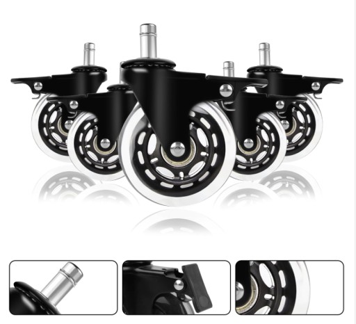 Kółka obrotowe kauczukowe łożyskowane, dedykowane do krzeseł oraz foteli biurowych.