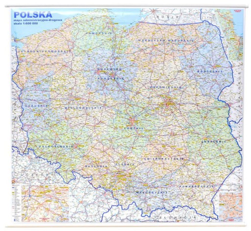 Administracyjno-drogowa mapa ścienna Polski w skali 1:600 000.