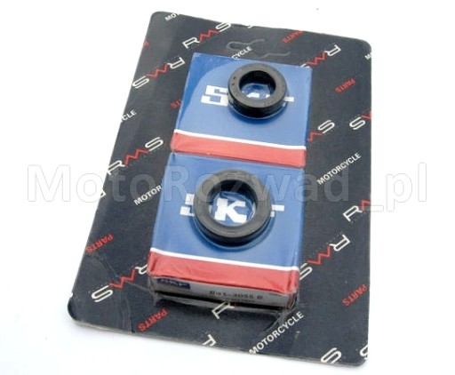 Nowe łożyska SKF wraz z uszczelniaczami wału zapakowane przez firmę RMS. W pudełku znajdują się dwa łożyska SKF oraz dwa uszczelniacze na prawą i lewą stronę wału.