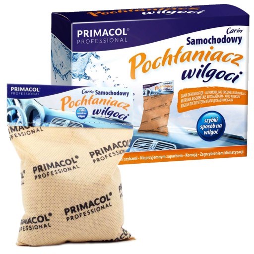 Samochodowy pochłaniacz wilgoci, który szybko i skutecznie obniża zawilgocenie powietrza do optymalnego poziomu 55-60%. Zastosowanie pochłaniacza zapobiega parowaniu szyb, korozji elementów elektrycznych, przeciwdziała rozwojowi grzybów i pleśni oraz usuwa nieprzyjemny zapach stęchlizny. Pochłonięta wilgoć jest trwale zamknięta w saszetce, nie pozostawiając zabrudzeń ani mokrych plam. Produkt nie wymaga zasilania. Może być stosowany w samochodach, przyczepach kempingowych i łodziach.