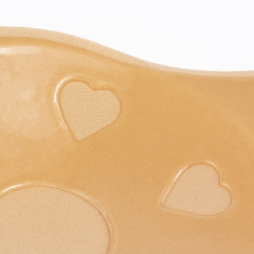 Wykonane z wysokiej jakości satyny, w cielistym kolorze. Druga storna pokryta jest hipoalergicznym klejem silikonowym, dzięki któremu naklejki doskonale przylegają do skóry.