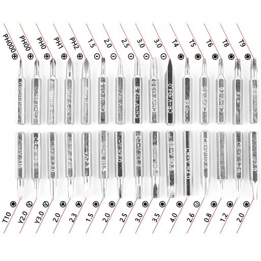 - 3 x bit Pentalobe – 0.8, 1.2, 2.0 mm