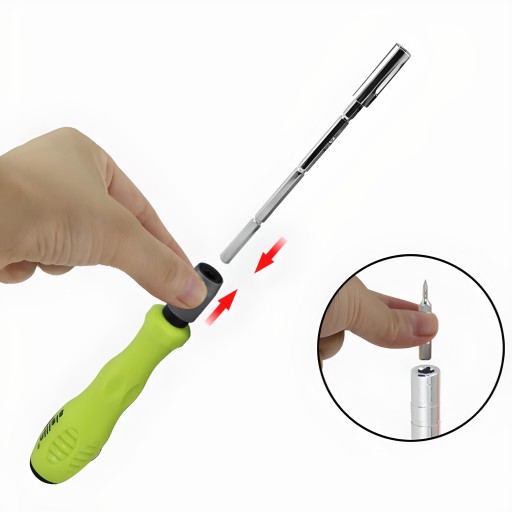 - Zestaw składający się z aż 32 elementów, który zastąpi Ci zdecydowaną większość zwykłych śrubokrętów