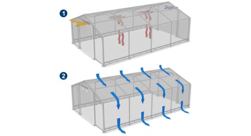 Po obu stronach dachu znajdują się wywietrzniki z okiennicami. Wytworzony obieg powietrza zapobiega tworzeniu się efektu sauny i skraplaniu wody.