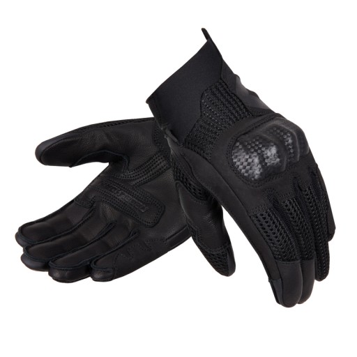 Połączenie naturalnej skóry koziej z wytrzymałymi materiałami typu mesh czy neopren zapewnia najwyższy komfort użytkowania, a dzięki zastosowaniu twardego protektora kostek i nadgarstków, podwójnej warstwy skóry i ochraniaczy umieszczonych we wnętrzu dłoni, rękawice gwarantują też bardzo dobry poziom ochrony przed skutkami upadków.