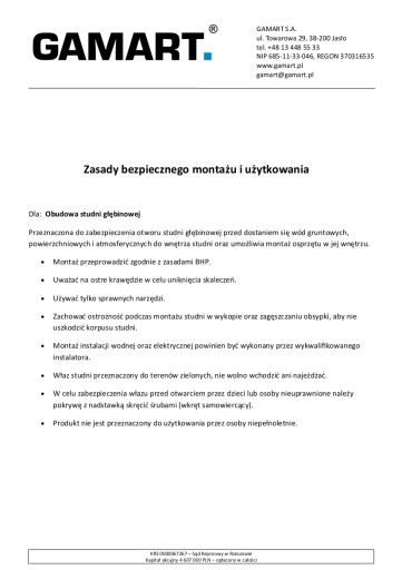 Obudowa studni głębinowej fi 110/32 mm GAMART.